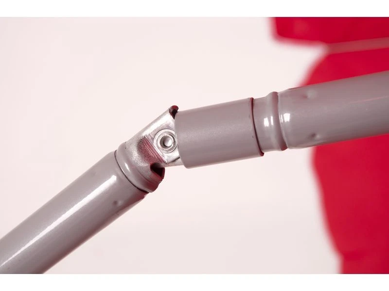 Een stijlvolle en stevige parasol met stalen frame. Biedt bescherming tegen schadelijke zonnestraling. De steel is voorzien van een knikarm zodat het doek richting de zon kan worden gebogen. De steel van de parasol heeft een diameter van 22 millimeter.
