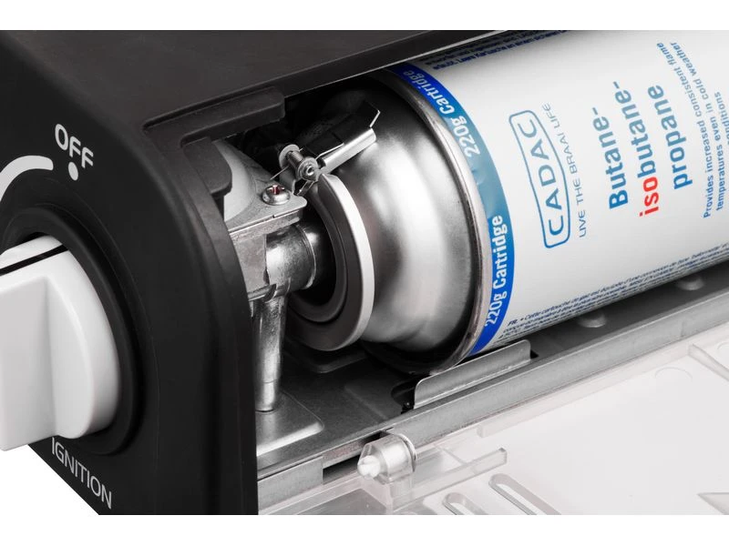 De nieuwe Safari Chef 30 Compact is een ultra compacte, lichtgewicht gasbarbecue. Deze BBQ werkt rechtstreeks op een 227gr gasblikje; plaats de gascartridge in het toestel, klik hem vast en je kunt gelijk beginnen met koken of barbecueën. Een ideaal toestel tijdens outdoor activiteiten en kampeervakanties. Ondanks zijn kleine formaat is de Safari Chef Compact Lite uiterst veelzijdig dankzij de drie meegeleverde kookoppervlakken; een pandrager, een BBQ rooster en een deksel/pan. Op de pandrager kook je eenvoudig een pannetje soep of pasta. Het BBQ rooster is voorzien van CADAC’s GreenGrill coating en is perfect voor het bakken en grillen van vlees, vis en groentes. De deksel kun je ook gebruiken als (soep)pan en is dus multifunctioneel. De lekbak vangt eventuele kookresten op als je het BBQ rooster gebruikt, maar doet ook dienst als windscherm zodat de brander niet uitwaait. Een stevige draagtas wordt meegeleverd, zodat je de Safari Chef Compact eenvoudig overal mee naartoe neemt.