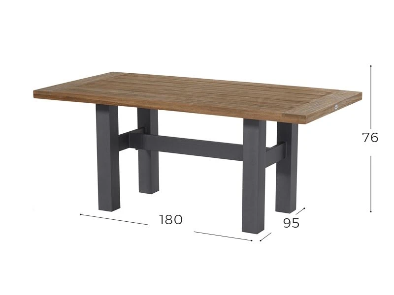 Afm. Tafel 180 x 95x 76 cm.