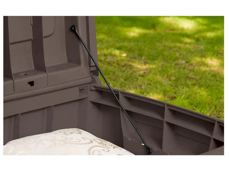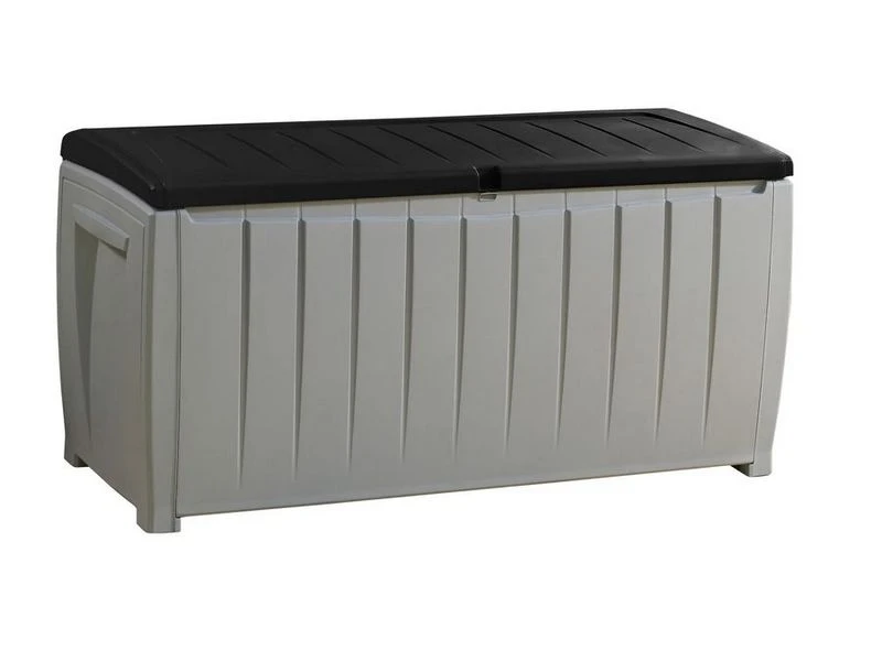 Met een stijlvol tweekleurig ontwerp en een geraffineerd gelamineerde uiterlijk, ziet de Novel opbergbox er geweldig uit. Het heeft een inhoud van 340 L (voor ongeveer acht tuinstoel kussens!) en houdt je spullen fris en droog dankzij de weerbestendige uitvoering en kan ook worden gebruikt als zitmeubel met plaats voor twee volwassenen, waardoor het perfect is voor het ontvangen van familie en vrienden.