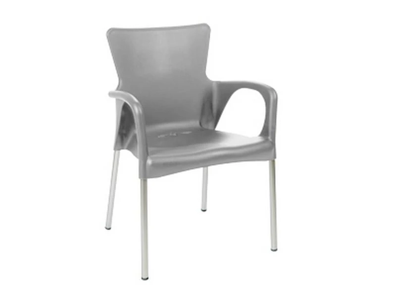 Lesli tuin-stapelstoel Bella kunststof grijs met aluminium poten