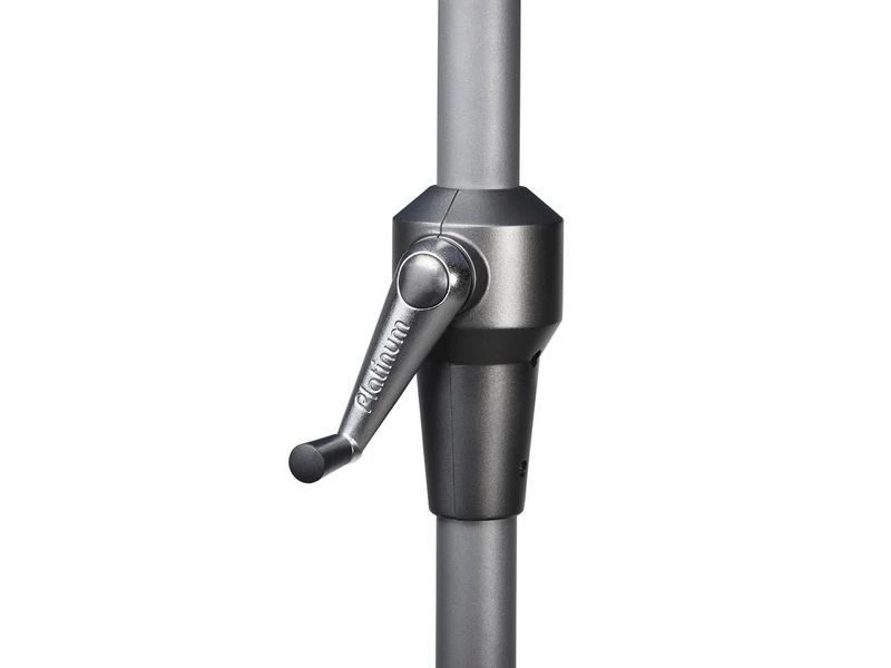 Deze design parasol is voorzien van een easy-up opdraaimechanisme, doekspanners en heeft een dikke mast.